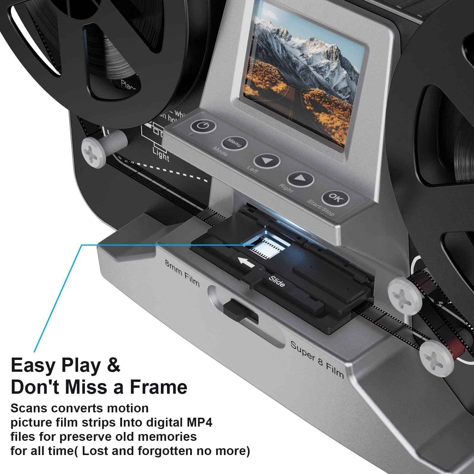 - Regular 8 and Super 8 Film to Digital - Flip the Super 8/8mm switch on before using this film scanner and the film to digital converter will effortlessly convert your regular 8 or Super 8 film to digital.