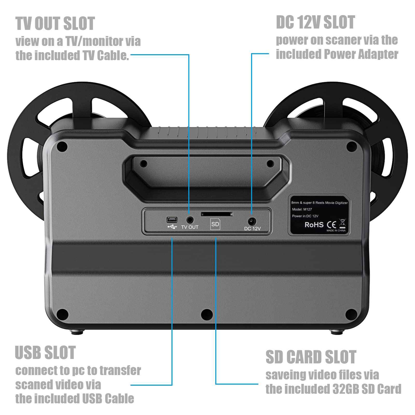 - No PC or Driver Required - 8mm to digital scans and directly saves digital movies into SD/SDHC cards (32GB max). 32 GB SD save 30-50 video files of 5-inch film.