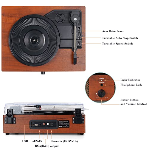Record Player Bluetooth Turntable for Vinyl with Speakers & USB Player